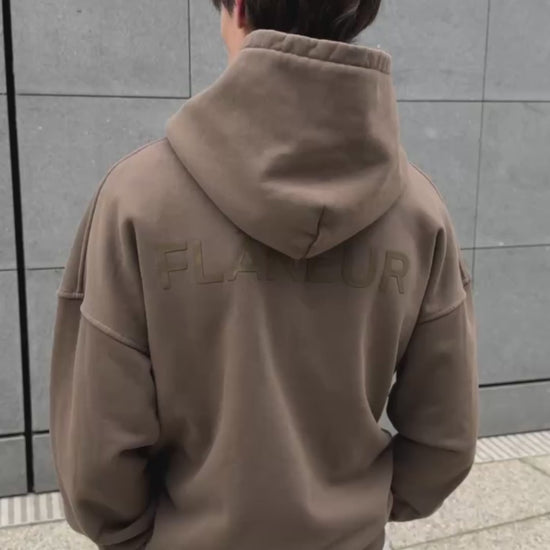 Double Logo Washed Hoodie (500GSM) | Brown